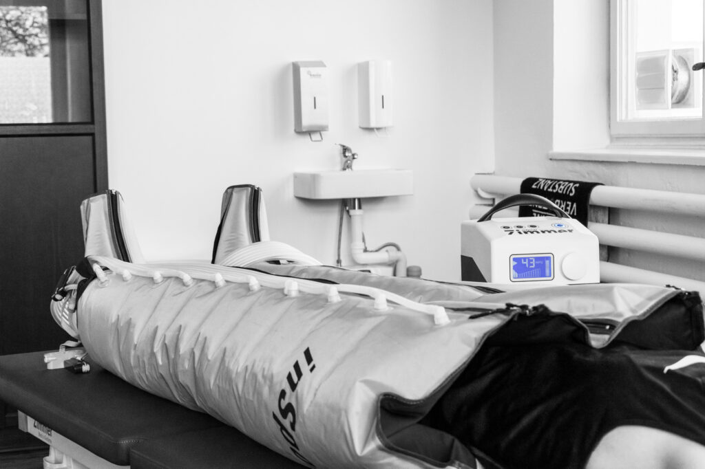Für eine bessere Regeneration und leistungsfähigere Muskulatur im Sport. Die durch die Anwendung erhöhte Blutzirkulation fördert den Abtransport von Flüssigkeiten, beseitigt Schwellungen und beschleunigt somit die Regeneration der Gliedmaßen [Quelle: Zimmer Medizintechnik].